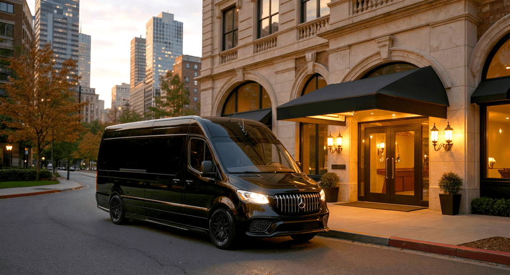 Do you have important business needs? A mobile office luxury Sprinter will increase your productivity and impress your clients. Working from the road is difficult, and you need more than a few rows of seats in the back of a SUV and a laptop to be truly productive. When you ride in a mobile office luxury Sprinter van, you can make a cup of coffee and use the airline-style writing desk while sitting in a plush leather recliner. You can even participate in video conference calls, and you’ll be sure to see the video clearly with power window shades and a 4k television.