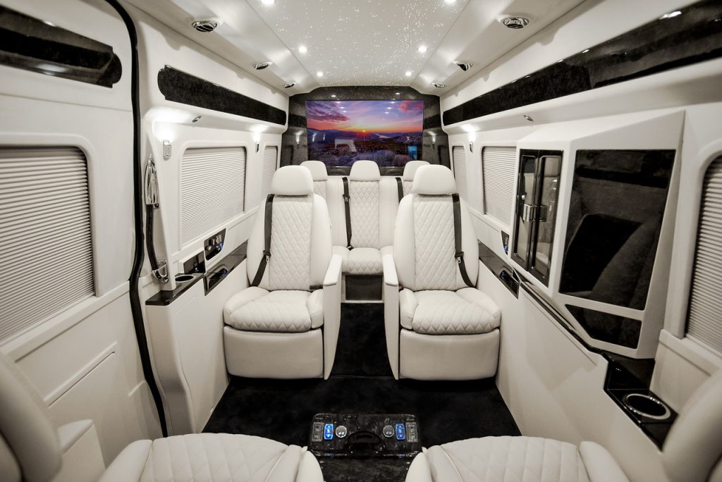 A well-designed luxury sprinter can shift from executive suite to private lounge with ease. Seating layouts, media systems, beverage stations, and restful cabin design make the vehicle useful well beyond formal business hours.